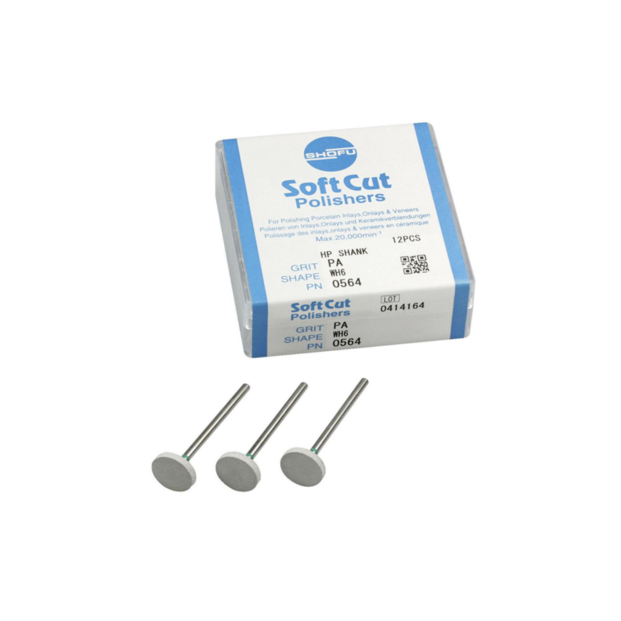 The Shofu Dental Ceramiste Soft PA Polishers HP WH6 12/Pk Green, with an ISO number of 120 and a shank diameter of 2.35 mm, are specifically manufactured as essential mounted polishing instruments for the crucial initial finishing and smoothing of porcelain veneers, inlays, and onlays within the dental laboratory. These abrasive instruments, designed to be used in a dental handpiece, are a core component of the Ceramiste Soft system, tailored to meet the exacting demands of fine porcelain restorations.