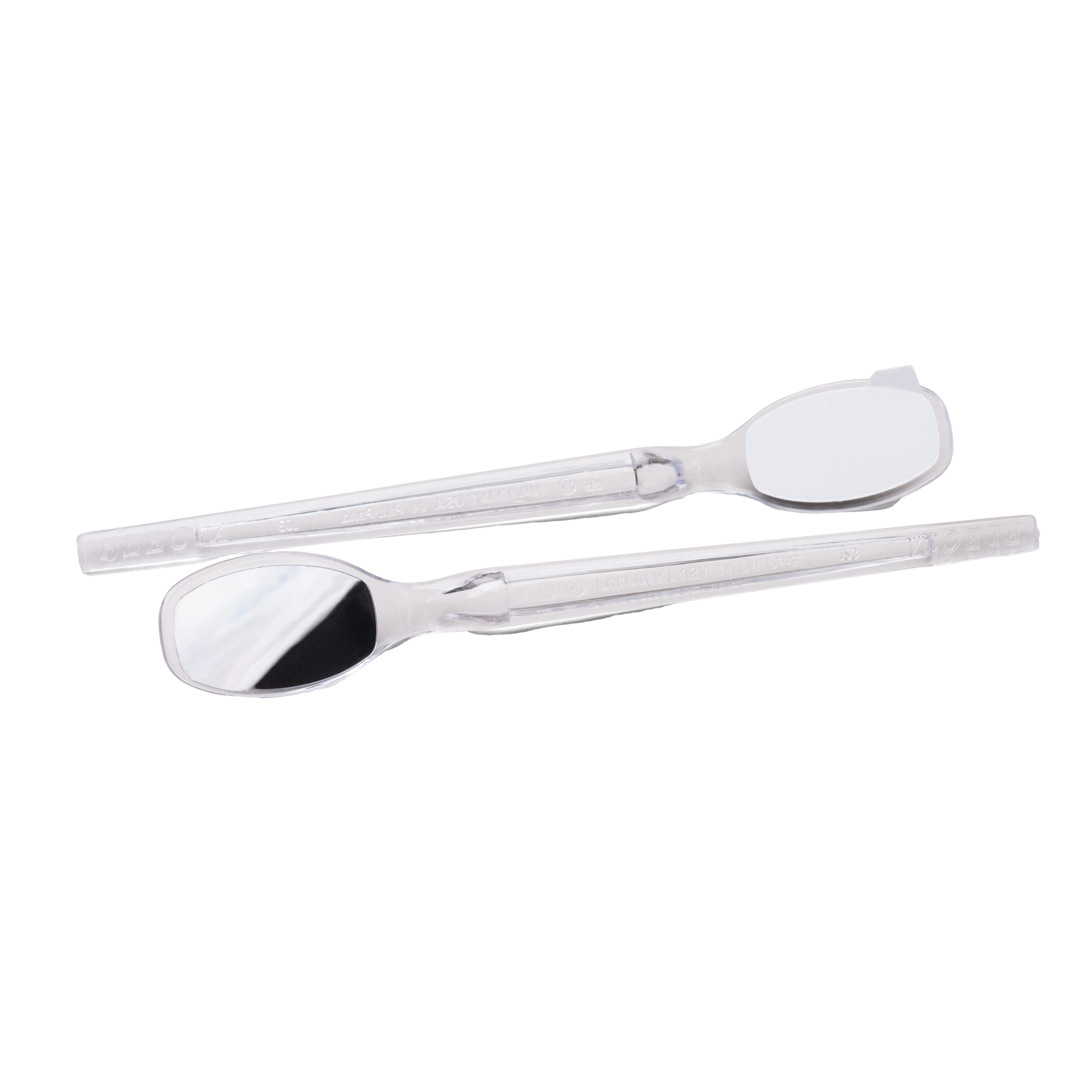 The double-sided design of Flecta Disposable Mirrors features a backside light reflector and an elongated mirror that provides a 40% larger viewing area than other standard mirrors. These lightweight mouth mirrors have a pull tab that allows the easy removal of the protective film from the mirror surface without scratching or blotching.