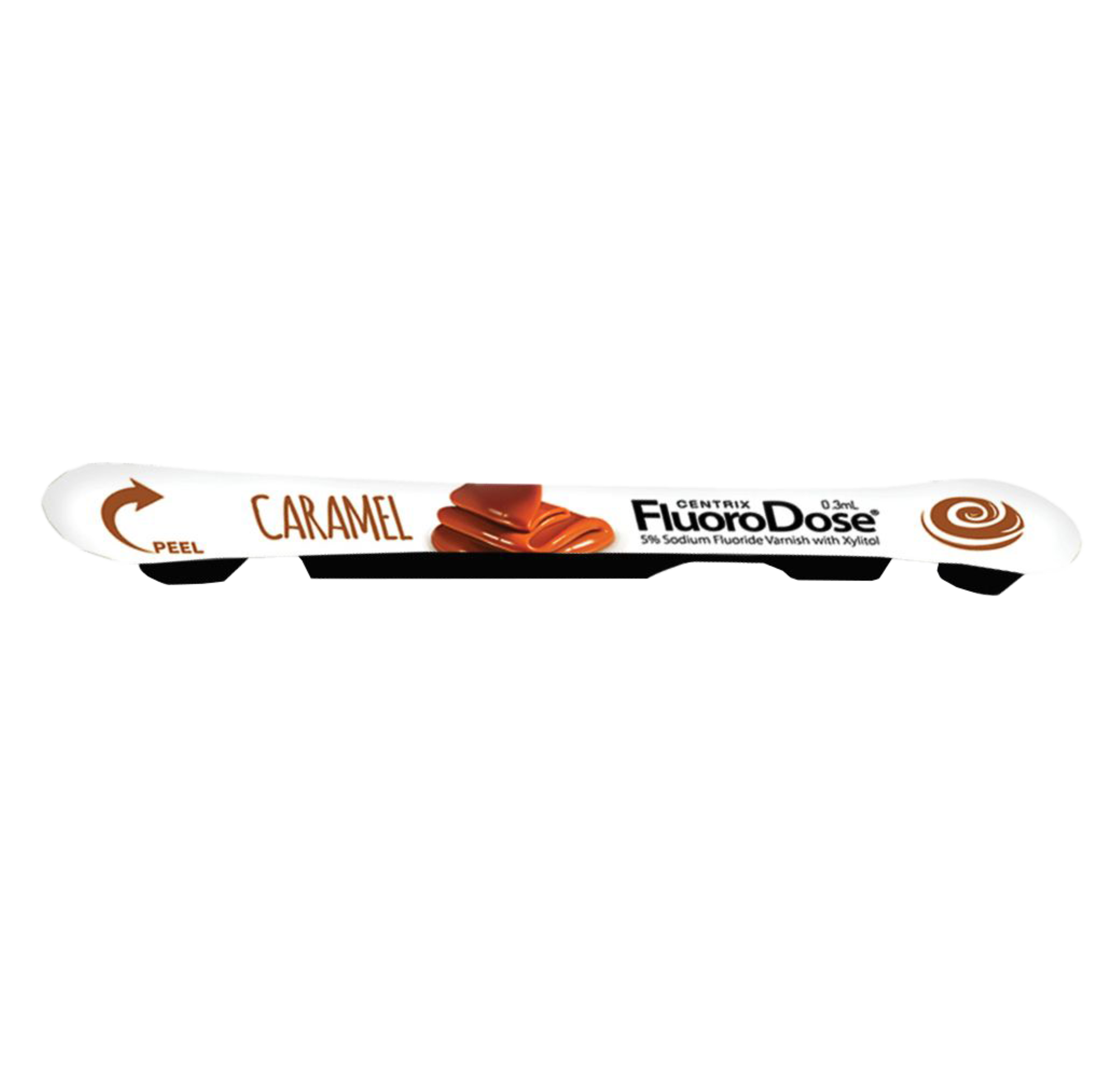 FluoroDose contains 5% sodium fluoride (NaF) or 22,600 ppm of fluoride. Each unit contains one single dose (0.3 mL) of FluoroDose plus one Benda? Brush applicator. Simply peel back the cover, dip in the brush, mix and apply. Centrix makes fluoride varnish safer and cleanup easier.