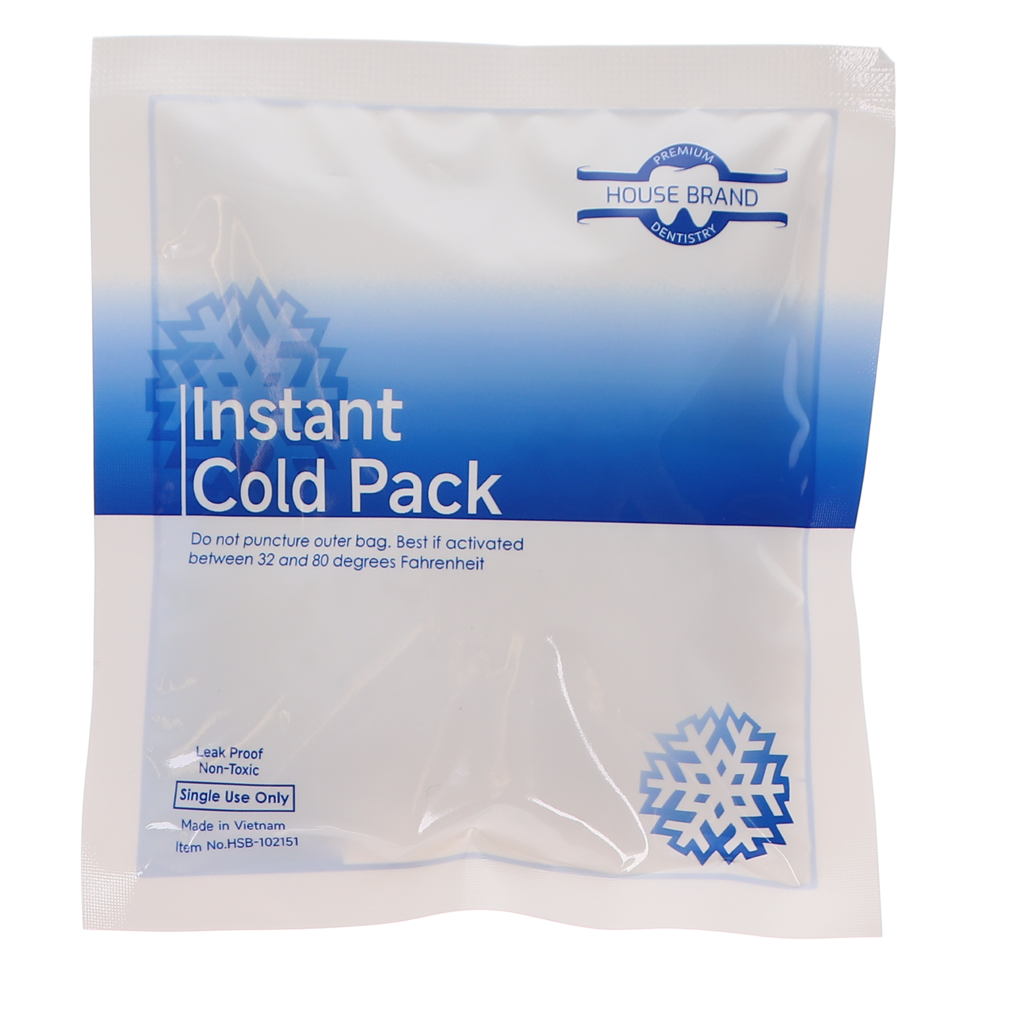 The HSB - House Brand Dentistry Instant Cold Packs, Disposable, 5" x 5.5" 80/Pk is a professional-grade solution designed to provide immediate, sanitary, and effective cold therapy to patients. If you are not certain what a disposable instant cold pack is, it is a single-use pouch that, when activated by a simple squeeze, initiates a chemical reaction to provide instant cooling without the need for pre-freezing.
